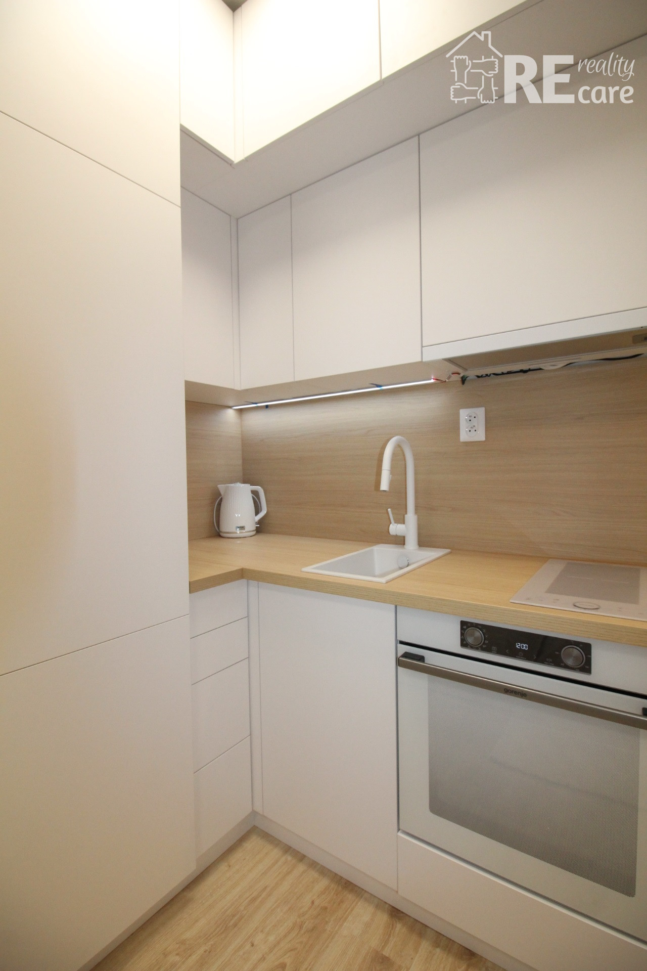 - Zariadená kuchynská linka s ultra tichými vstavanými spotrebičmi (chladnička s mrazničkou, el. rúra, indukčná varná doska, digestor), s granitovým drezom s výsuvnou batériou, s mikrovlnnou rúrou a s rýchlovarnou kanvicou.